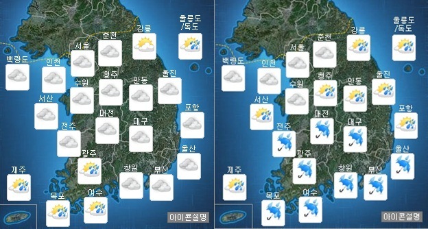 [OSEN=이슈팀]오늘 날씨는 전국이 대체로 흐리고, 전남해안부터 점차 비가 시작돼 늦은 밤에는 충청 이남까지 확대될 전망이다.