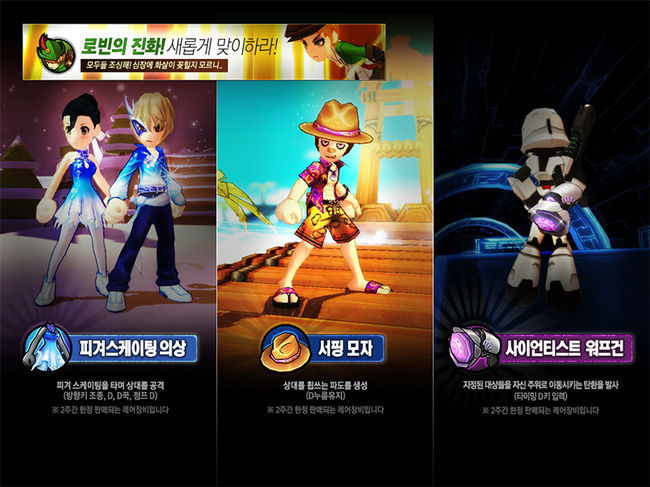 공개된 레어 장비로는 스케이트를 타며 상대를 공격하는 '피겨스케이팅 의상', 파도에 상대를 휩쓸려 보내는 '서핑 모자', 지정된 대상들을 자신 주위로 이동시켜 탄환을 발사하는 '사이언티스트 워프건' 총 3종이다.
