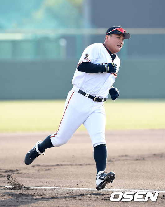 한화 김태균이 베이스러닝 훈련을 하고 있다.