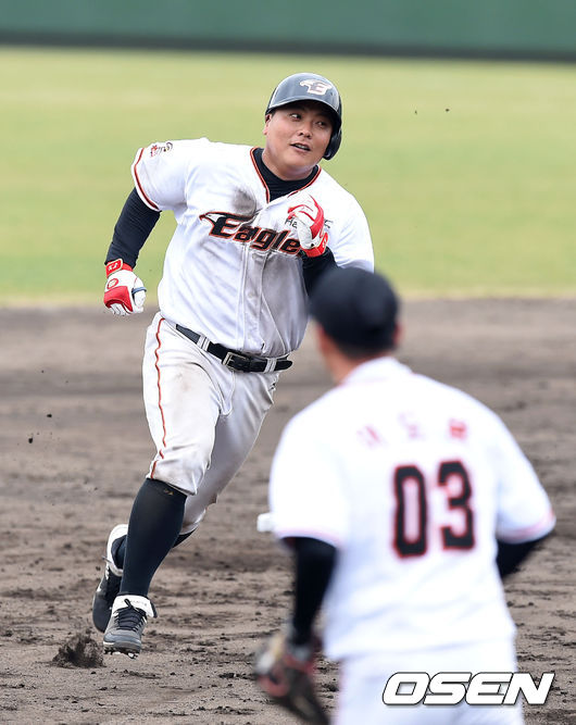 한화 김태균이 베이스러닝 훈련을 하고 있다.