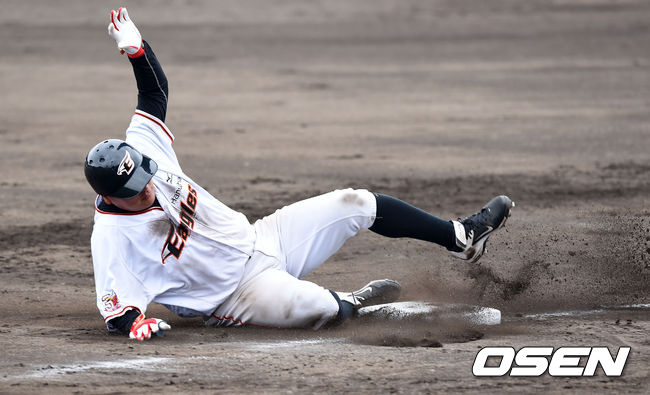 한화 김태균이 베이스러닝 훈련을 하고 있다.