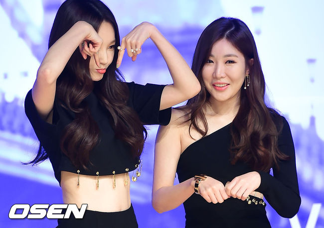 21일 오후 서울 강남구 청담동 일지아트홀에서 진행된 여성 듀오 다비치의 컴백 '다비치 허그(DAVICHI HUG)'쇼케이스에서 강민경과 이해리가 포즈를 취하고 있다.