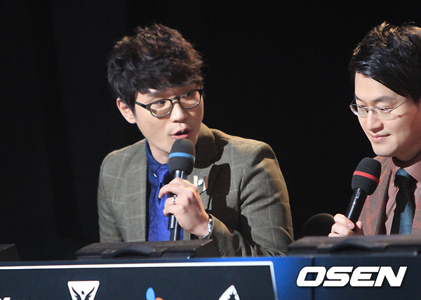 21일 오후 서울 용산 온게임넷 e스포츠 상설경기장에서 '2015 LOL 챔피언스(이하 롤챔스)' 코리아 스프링 7회차 1경기 KT 롤스터와 CJ 엔투스의 경기가 열렸다. '클템' 이현우 해설위원이 친정팀인 CJ의 최근 선전에 대해서 칭찬을 아끼지 않고 있다.