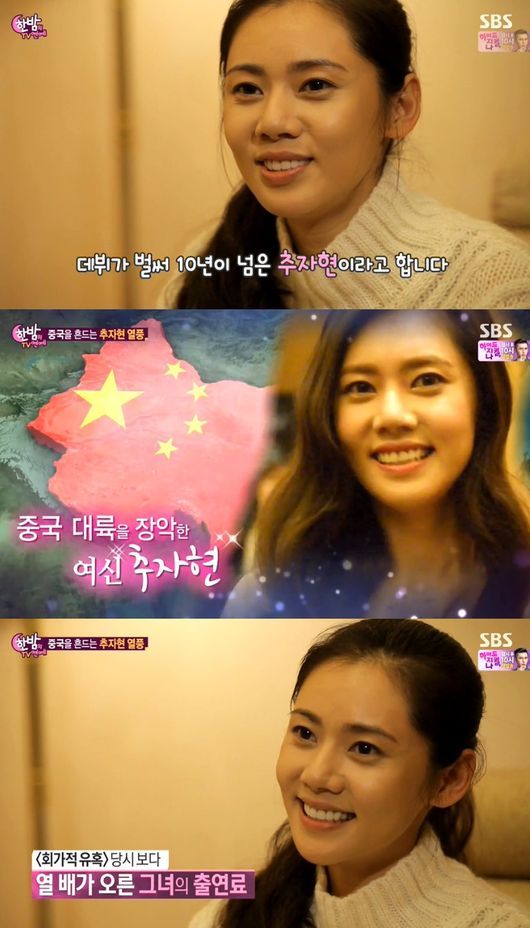 지난 2011년 아내의 유혹을 리메이크한 ‘회가적유혹’으로 중국에서 주목을 받은 추자현. 추자현은 “‘회가적유혹’을 비교하면 출연료가 딱 10배가 올랐다”면서 “문화 차이가 있는 사람들에게 감동을 줄 수 있을 때까지 노력이 참 많이 힘들었다”고 말했다.