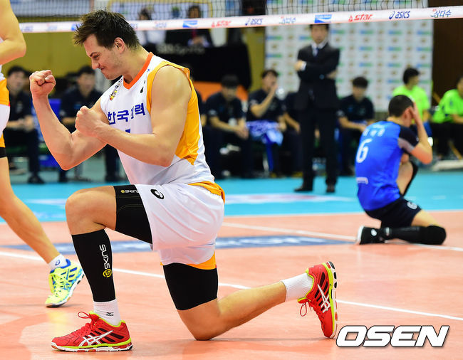 4세트, 한국전력 쥬리치가 공격을 성공시킨 뒤 기뻐하고 있다.
