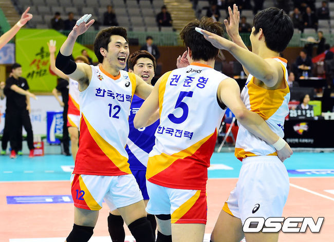 한국전력은 21일 수원 실내체육관에서 열린 NH농협 2014~2015 V-리그 4라운드 현대캐피탈과의 경기에서 3-1(22-25, 25-22, 25-22, 25-21)로 역전승했다. 4연승으로 14승 10패, 승점 39점이 된 한국전력은 대한항공(승점 37점)을 제치고 3위로 올라갔다.