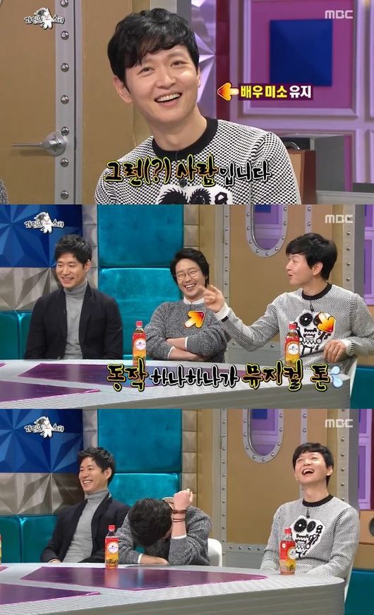 이건명은 21일 오후 11시 10분 방송된 MBC '황금어장-라디오스타'에서 뮤지컬 배우다운 다양한 제스처로 웃음을 자아내게 했다.