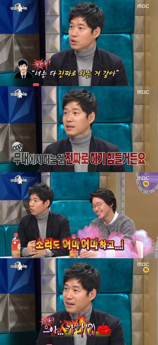 유준상은 21일 오후 11시 10분 방송된 MBC '황금어장-라디오스타'에서 "엄기준의 키스신은 정말 리얼하다"고 말했다.