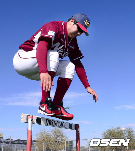 넥센과 함께 훈련을 하고 있는 강정호가 허들 훈련을 하고 있다./spjj@osen.co.kr