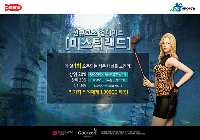 먼저, 최고 레벨이 35에서 40까지 상향 조정되고 신규 코스 ‘미스틱 랜드’가 오픈됐다. ‘미스틱 랜드’는 구름을 허리에 두른 높은 봉우리들과 신비로운 동굴 안에서 골프를 즐길 수 있는 이색 코스다.