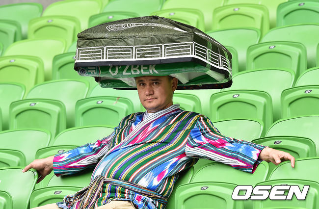 22일 오후(이하 한국시간) 호주 멜버른 렉탱귤러 스타디움서 슈틸리케 감독이 이끄는 한국 축구대표팀과 우즈베키스탄의 2015 AFC 호주 아시안컵대회 8강전 경기가 열릴 예정인 가운데 우즈벡 응원단이 관중석에서 그라운드를 바라보고 있다.