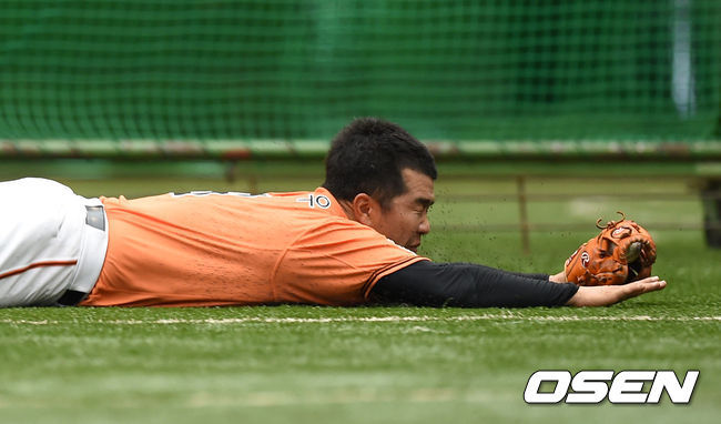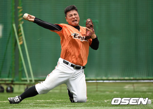 무엇보다 훈련 강도가 아주 셌다. 오전 9시 워밍업을 시작으로 10시부터 본격적인 수비 훈련이 시작됐다. 7명의 내야수들이 김광수 수석코치와 임수민 수비코치로부터 집중적인 펑고 세례를 받았다. 김태균은 무릎 꿇은 채 일그러진 표정으로 송구했고, 정근우도 양팔을 무릎에 대고 가쁜 숨을 몰아쉬었다.