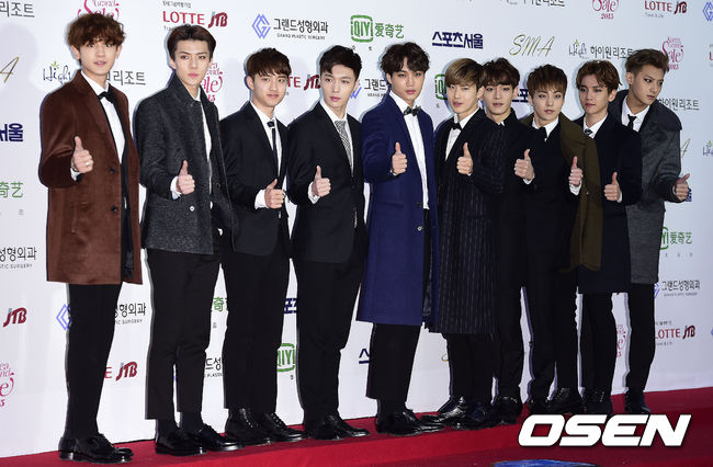 22일 오후 서울 올림픽 체조경기장에서 열린 '제24회 하이원 서울가요대상' 레드카펫 행사에서 그룹 엑소가 포토타임을 갖고 있다.