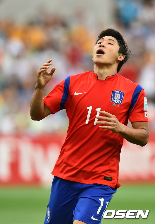후반 이근호가 슛이 빗나가자 아쉬워하고 있다.