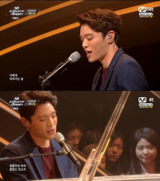 에디킴은 22일 방송된 엠넷 음악프로그램 ‘엠카운트다운’에서 신곡 ‘마이 러브(My Love)’를 피아노 연주와 함께 들려줬다.
