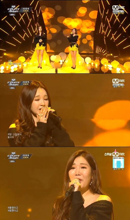 다비치는 22일 방송된 엠넷 음악프로그램 ‘엠카운트다운’에서 ‘또 운다 또’를 열창했다. 이들은 가슴 절절한 가사의 노래를 감성적으로 부르며 시청자들의 귓가를 울렸다.