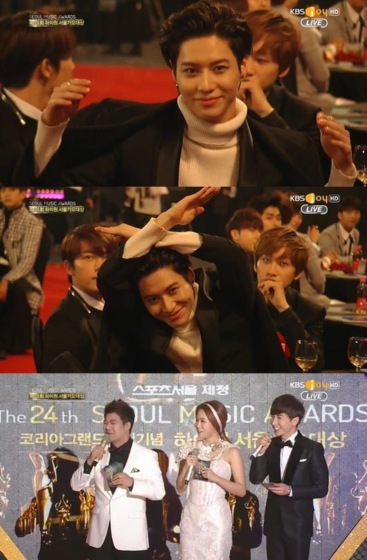 태민은 22일 오후 방송된 제24회 하이원 서울가요대상에서 전현무를 샤이니 멤버로 인정하지 않았다.