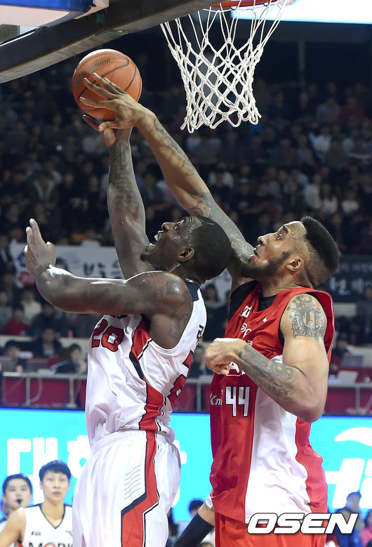 4쿼터 모비스 라틀리프가 슛을 시도하고 있다.