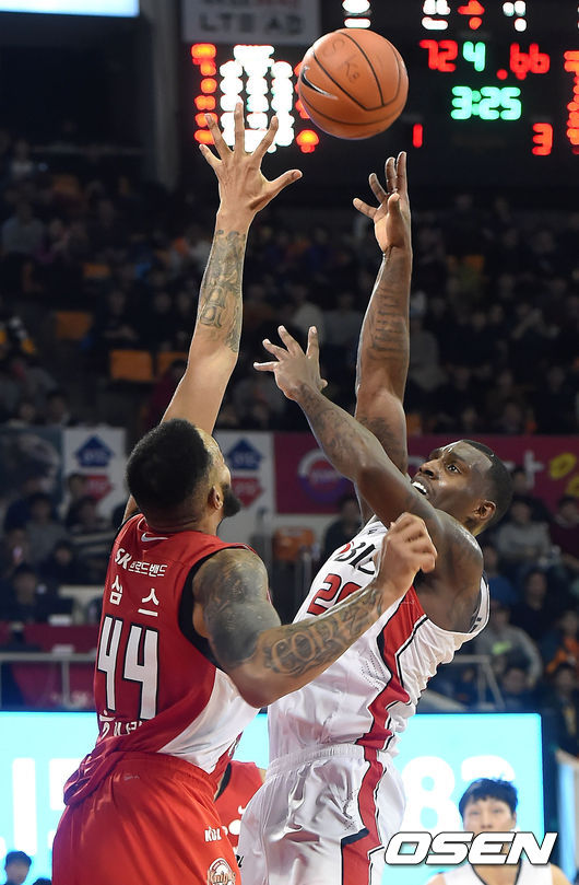 4쿼터 모비스 라틀리프가 슛을 시도하고 있다.