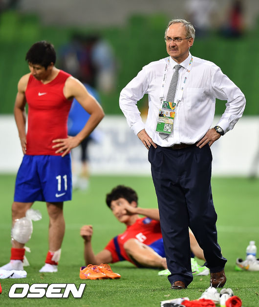 경기를 마치고 슈틸리케 감독이 오늘 뛰지 않은 선수들을 그라운드를 돌게하고 그 모습을 지켜보고 있다./ rumi@osen.co.kr