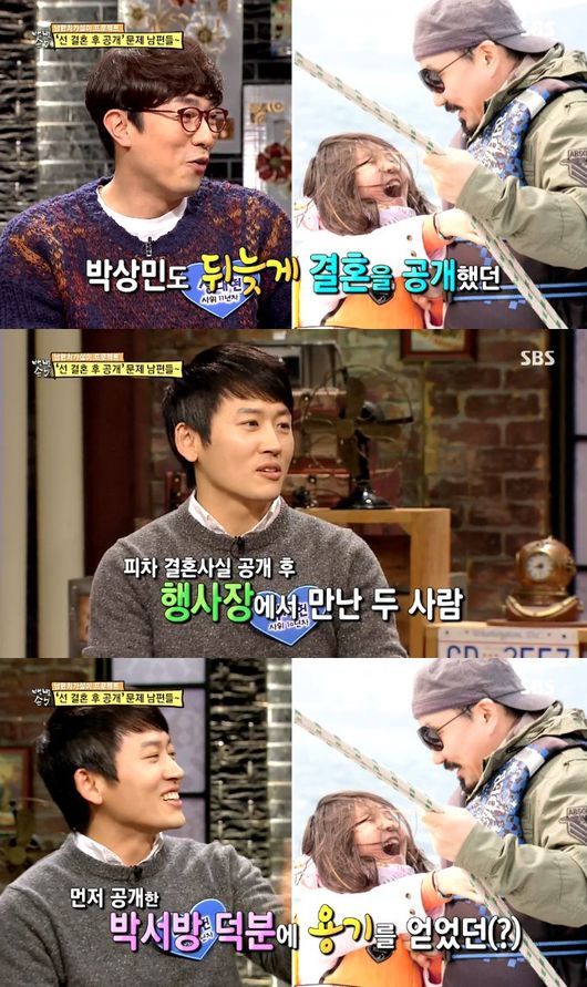 그는 “박상민 선배님을 뵌 적이 있다”면서 “선배님이 ‘너 괜찮지?’라고 하더라. 내 덕분에 자신이 살았다고 농담했다”라고 털어놨다. 박상민 역시 결혼 7년 만에 대중에게 알린 바 있다.