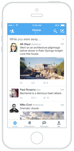 예를 들어 일을 마치고 귀가한 뒤 다음날까지 한 번도 트위터를 사용하지 않은 사용자가 트위터에 로그인할 경우, 해당 사용자가 팔로우하는 계정 가운데 가장 참여도(engagement)가 높았던 트윗들을 보여주는 식이다. 사용자들은 자리를 비운 사이 발생한 소식들을 손쉽게 확인할 수 있기 때문에 더욱 간편하게 트위터를 즐길 수 있다.