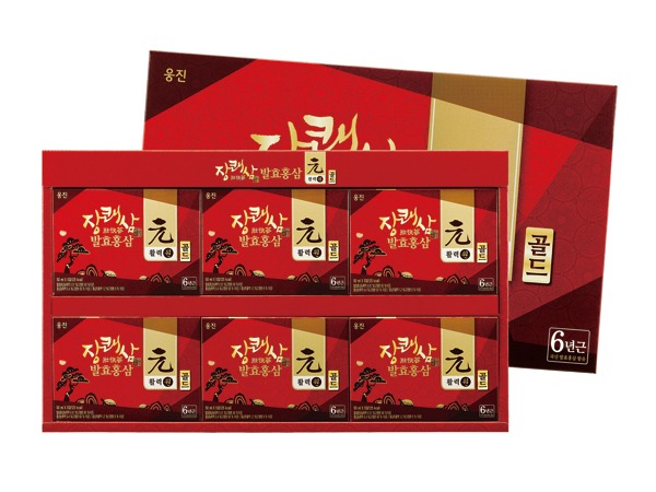 웅진식품에 따르면 '장쾌삼 활력원 골드'는 6년근 국산홍삼을 전근 발효시킨 홍삼 농축액과 추출액이 들어있어 홍삼의 향미를 진하게 느낄 수 있는 제품이다. 휴대가 간편한 파우치 타입으로 30포 1세트에 3만 원.