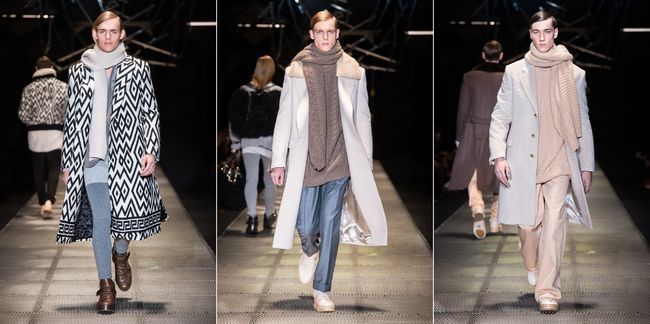 블랙앤 화이트의 그래픽 블랭킷 코트는 귀족적인 분위기를 자아내며 강력한 파워를 표출하는 더블 브레스트 코트는 길고 날렵한 자태를 뽐냈다.