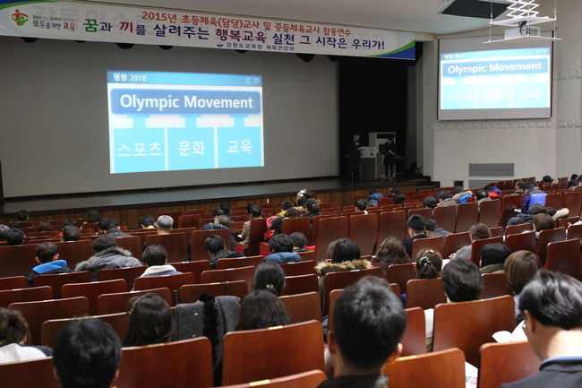 2018 평창동계올림픽대회 및 장애인올림픽대회 조직위원회(위원장 조양호)에서는 22일 오후 5시 강원도교육연수원에서 평창동계올림픽 성공개최를 위한 학교의 역할을 주제로 강원도 내 초․중등 체육교사 700여명에게 동계올림픽 교육을 실시했다.
