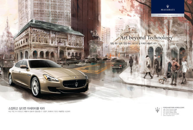 또한 브랜드 탄생 100주년 기념 'Art beyond Technology' 캠페인은 마세라티 브랜드의 대표적인 정체성인 ‘디자인’의 우수성을 감성적으로 전달하며 '달리는 예술품'이라는 호평를 이끌어 냈다. 특히 캠페인을 통해 한세기의 자동차 역사를 이뤄온 마세라티의 명성 속에는 기술력뿐만 아니라 100년의 예술혼이 깃들어 있다는 브랜드 정체성을 정확하게 표현했다는 평가를 받았다.