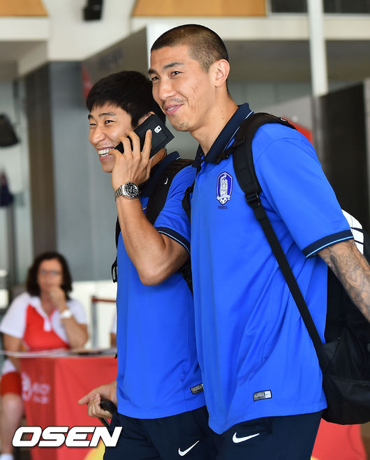 결국 슈틸리케호는 결전지 시드니에는 2시 30분이 다 되서야 도착하게 됐다. 시드니 공항에 도착한 차두리와 이근호가 환하게 미소짓고 있다. / rumi@osen.co.kr