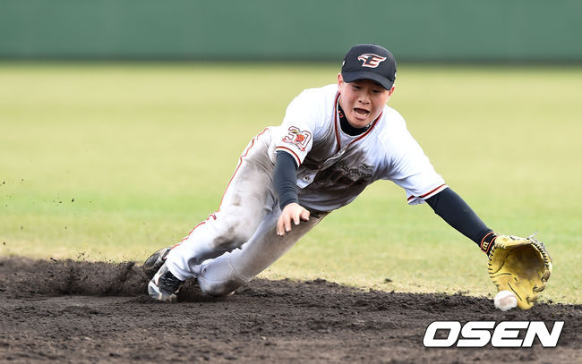 한화 이창열이 수비 훈련을 하고 있다.