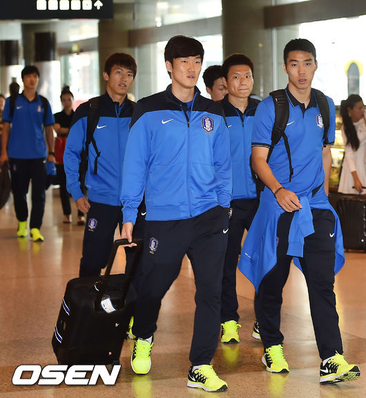결국 슈틸리케호는 결전지 시드니에는 2시 30분이 다 되서야 도착하게 됐다. 대표팀이 힘든 표정으로 공항을 빠져나가고 있다. / rumi@osen.co.kr