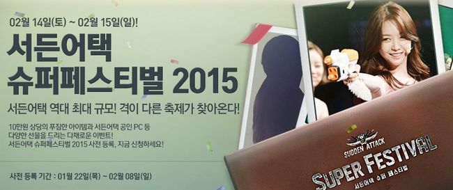 ‘서든어택 슈퍼페스티벌 2015’ 참가 신청 접수는 오는 2월 8일까지 서든어택 공식 홈페이지에서 가능하며, 2월 10일 당첨자에게 개별 안내한다.