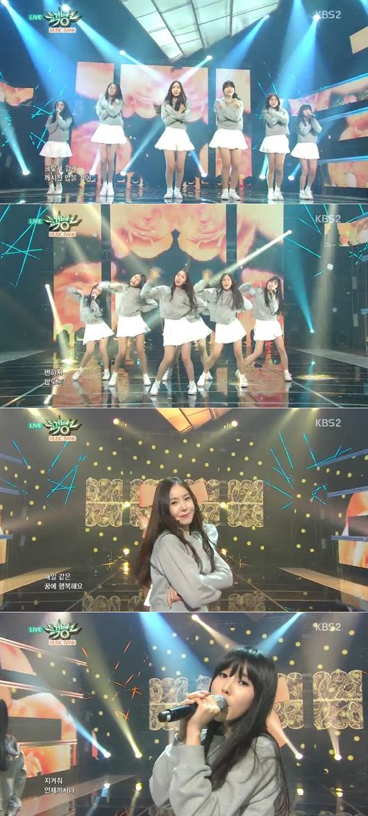 여자친구는 23일 오후 방송된 KBS 2TV 가요프로그램 ‘뮤직뱅크’에서 데뷔곡 ‘유리구슬’ 무대를 선보였다.
