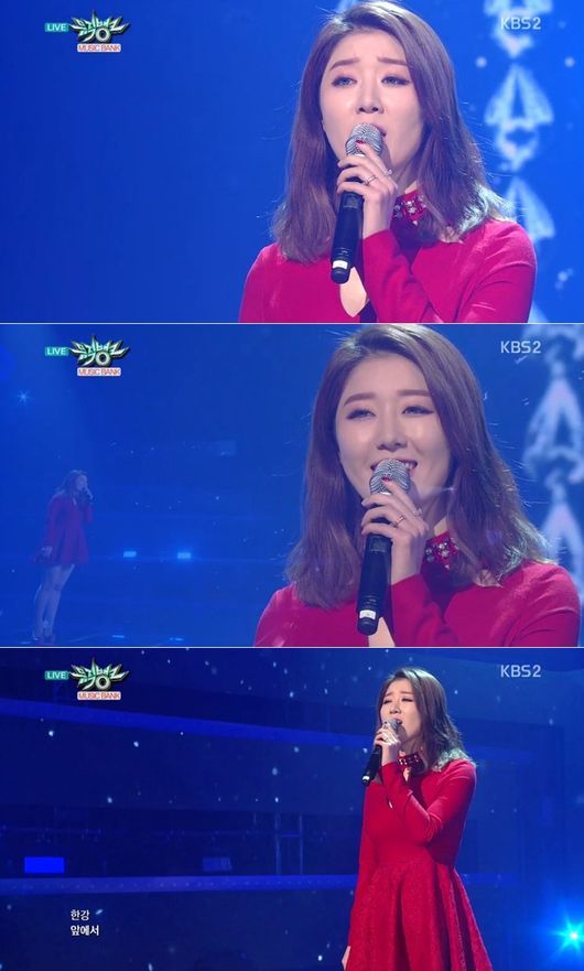 나비는 23일 오후 방송된 KBS 2TV 가요프로그램 ‘뮤직뱅크’에서 신곡 ‘한강 앞에서’ 무대를 꾸몄다.