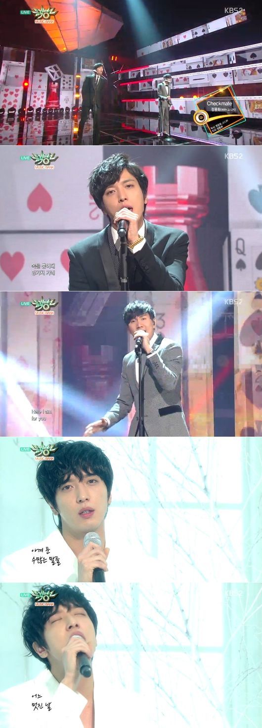 정용화는 23일 오후 방송된 KBS 2TV 가요프로그램 ‘뮤직뱅크’에서 신곡 ‘어느 멋진 날’과 ‘체크메이트’ 무대를 선보였다. 중화권 톱스타 임준걸이 지원사격해 듀엣 무대를 꾸몄다.