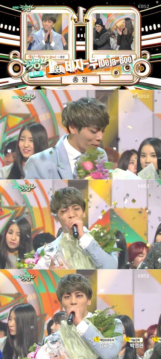 종현은 23일 오후 방송된 KBS 2TV 가요프로그램 ‘뮤직뱅크’에서 신곡 ‘데자-부(Deja-Boo)’로 매드클라운의 ‘화’를 꺾고 1위 트로피를 거머쥐었다.