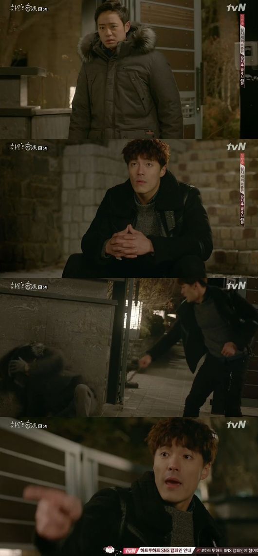 23일 방송된 tvN 금토드라마 '하트투하트'(극본 이정아, 연출 이윤정) 5회에서 장두수(이재윤 분)는 차홍도(최강희 분)와 잤다는 고이석(천정명 분)의 말을 듣고 흥분해 주먹을 휘둘렀다.