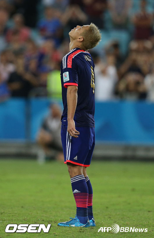 일본 혼다 케이스케가 승부차기에서 실축하며 아쉬워하고 있다./photo@osen.co.kr