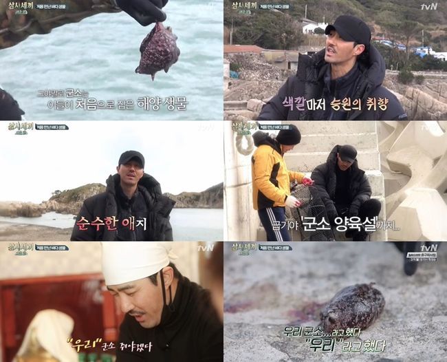 23일 오후 첫 방송된 tvN '삼시세끼-어촌편'(연출 나영석 신효정)에서는 차승원이 처음으로 바다생물 '군소'를 잡는 모습이 그려졌다.