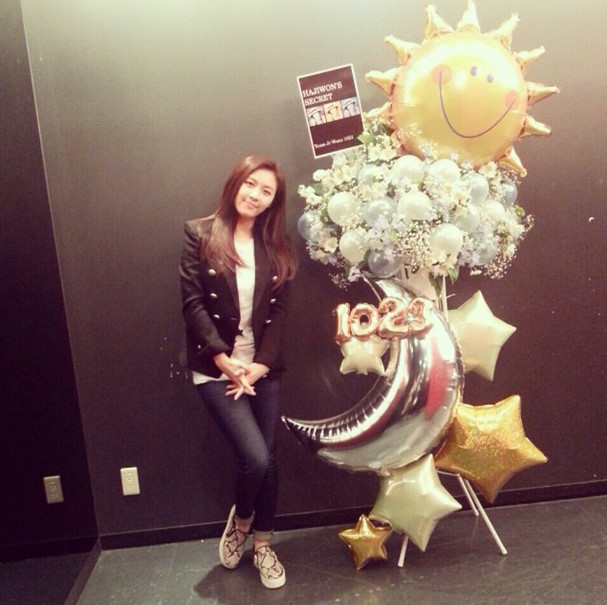 공개된 사진 속 하지원은 일본 팬들이 보낸 화환 옆에 서서 수줍게 포즈를 취하고 있는 모습이다. 특히 그는 길게 늘어뜨린 생머리와 날씬한 몸매로 변함없는 동안 미모를 자랑해 보는 이들의 시선을 사로잡고 있다.
