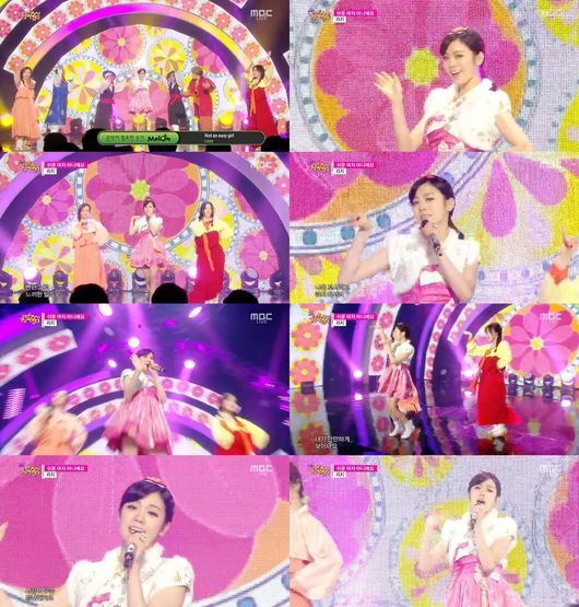 이날 리지는 계량한복을 입고 무대에 등장해 간드러지는 목소리로 '쉬운 여자 아니에요'를 선보였다. 특유의 발랄한 매력과 유머러스한 가사가 인상적이다.