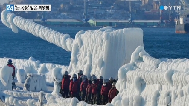 최근 해외 언론들은 최영함이 눈에 뒤덮인 모습을 담은 사진을 공개했다.