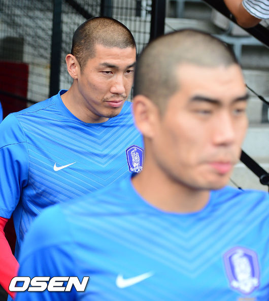 울리 슈틸리케 감독이 이끄는 한국 축구대표팀이 이라크와의 2015 아시안컵 4강전에 대비해 24일 오후 호주 시드니 코가라흐 오발에서 훈련을 가졌다. 차두리와 김주영이 훈련장으로 입장하고 있다.