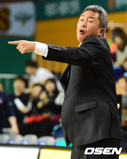 4쿼터, KT 전창진 감독이 선수들의 플레이를 보며 지시를 내리고 있다.