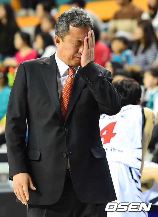 4쿼터, KT 전창진 감독이 아쉬운 표정을 짓고 있다.