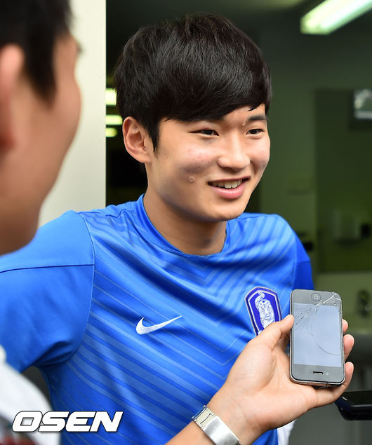 울리 슈틸리케 감독이 이끄는 한국 축구대표팀이 이라크와의 2015 아시안컵 4강전에 대비해 24일 오후 호주 시드니 코가라흐 오발에서 훈련을 가졌다. 김진수가 인터뷰하며 환하게 미소짓고 있다.