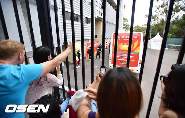 울리 슈틸리케 감독이 이끄는 한국 축구대표팀이 이라크와의 2015 아시안컵 4강전에 대비해 24일 오후 호주 시드니 코가라흐 오발에서 훈련을 가졌다. 훈련을 마치고 선수들이 나갈때 해외 팬 및 교포 팬들이 손을 흔들고 있다.