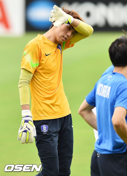 울리 슈틸리케 감독이 이끄는 한국 축구대표팀이 이라크와의 2015 아시안컵 4강전에 대비해 24일 오후 호주 시드니 코가라흐 오발에서 훈련을 가졌다. 김진현이 훈련중 구슬땀을 흘리고 있다.